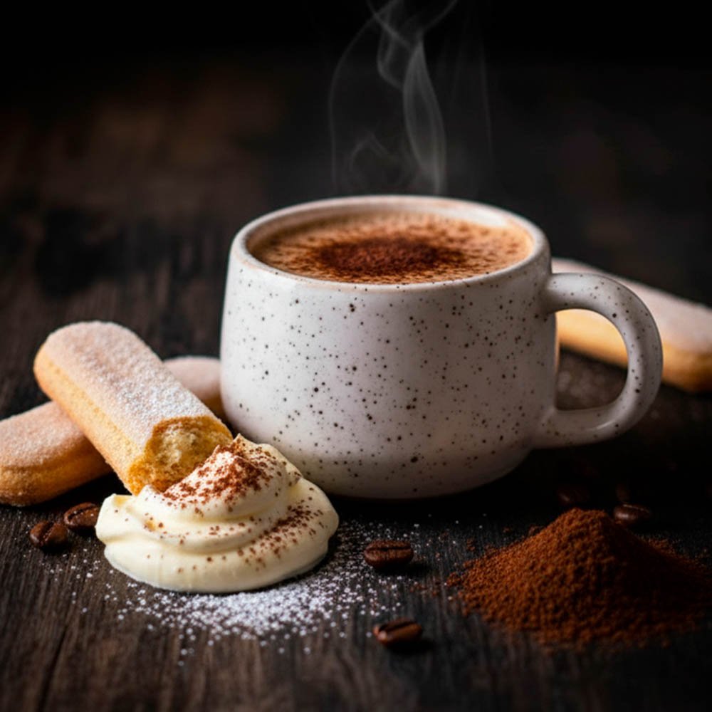 El café arábico aporta al tiramisú un carácter distintivo y un sabor profundo que realza en cada sorbo. Su aroma es rico y envolvente, con notas de chocolate que se entrelazan perfectamente con la cremosidad del mascarpone y el dulzor del bizcocho empapado en espresso. Este tipo de café, conocido por su suavidad y baja acidez, ofrece una experiencia gustativa equilibrada que se complementa con el toque sutil de cacao espolvoreado por encima. Cada pedacito de tiramisú se convierte en un deleite exquisito, transportando a quien lo prueba a las colinas italianas donde se cultiva este preciado grano.